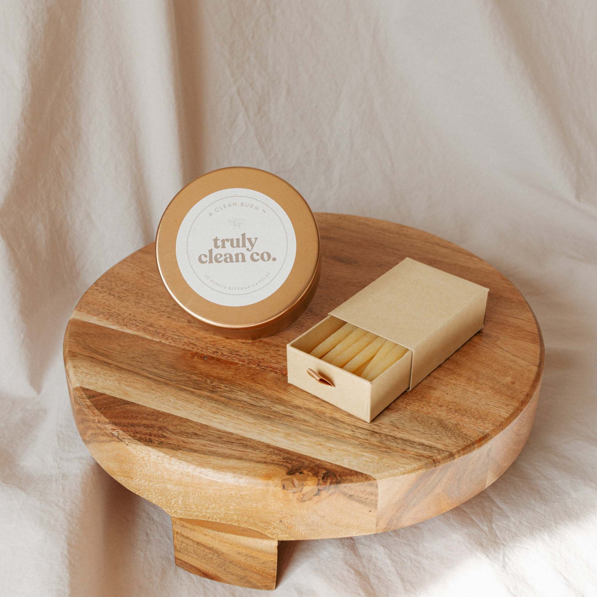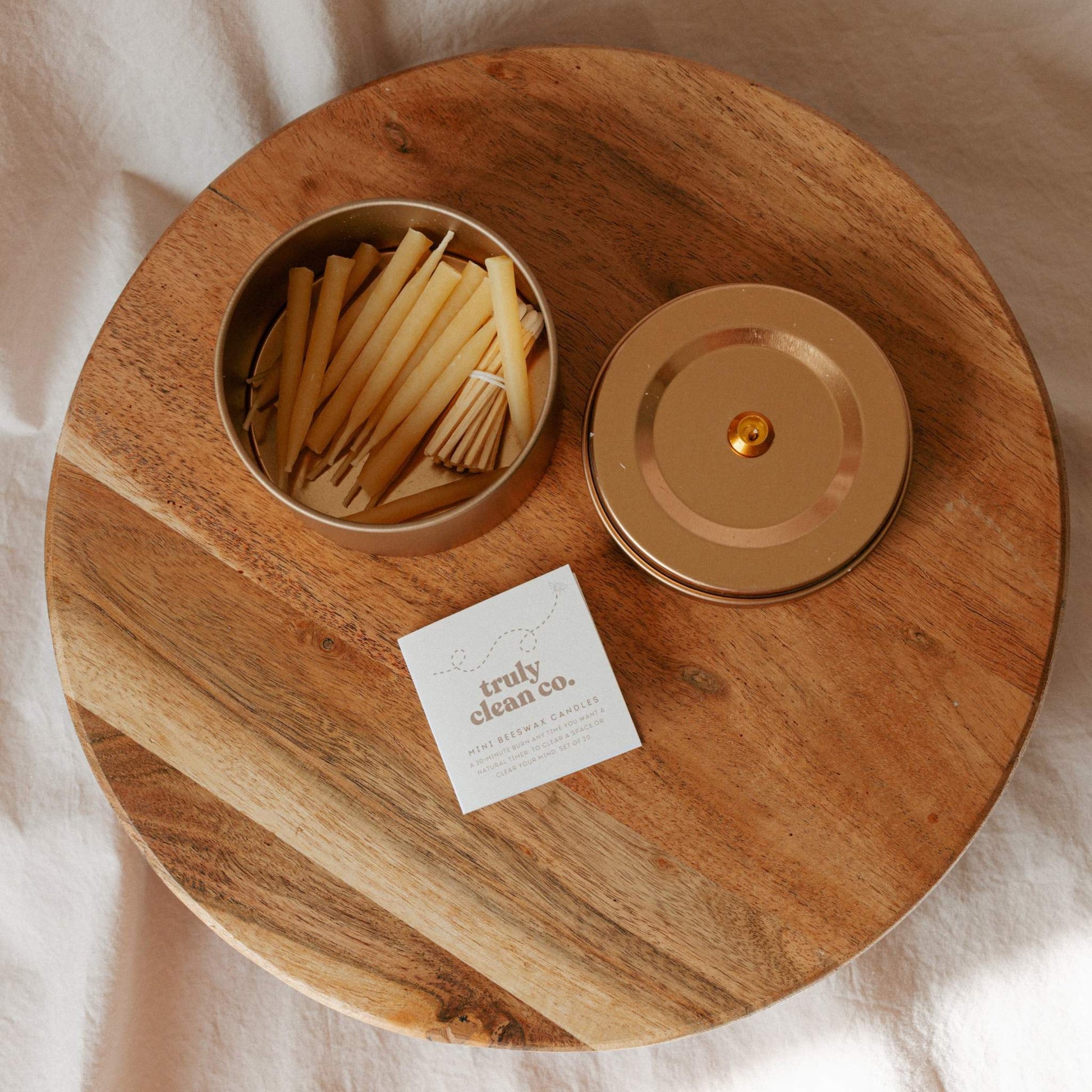 • 1 Reusable 20-Minute Ritual Kit (Candle holder + 20 pure beeswax candles + 20 matches)